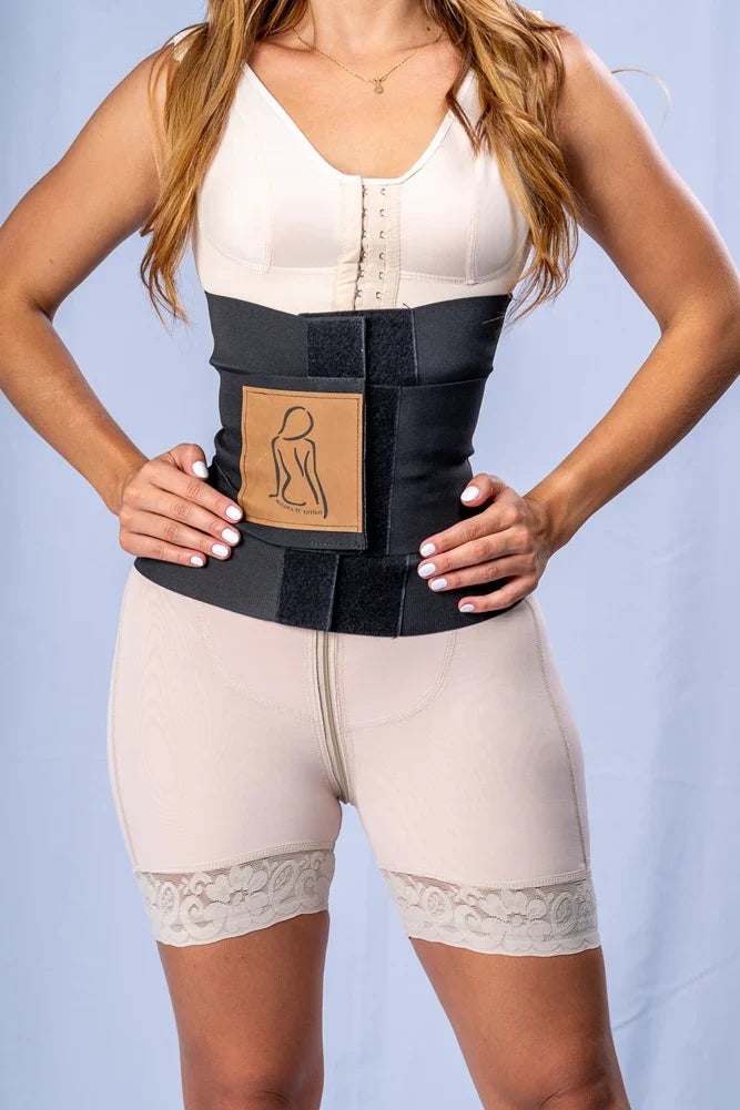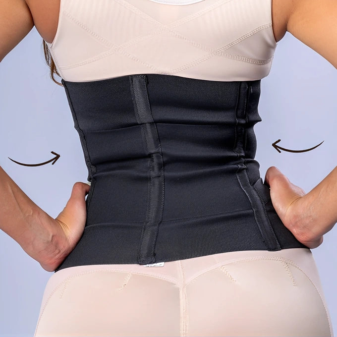 Diseñada con velcro frontal ajustable para adaptarse a distintos cuerpos sin perder firmeza ni comodidad.